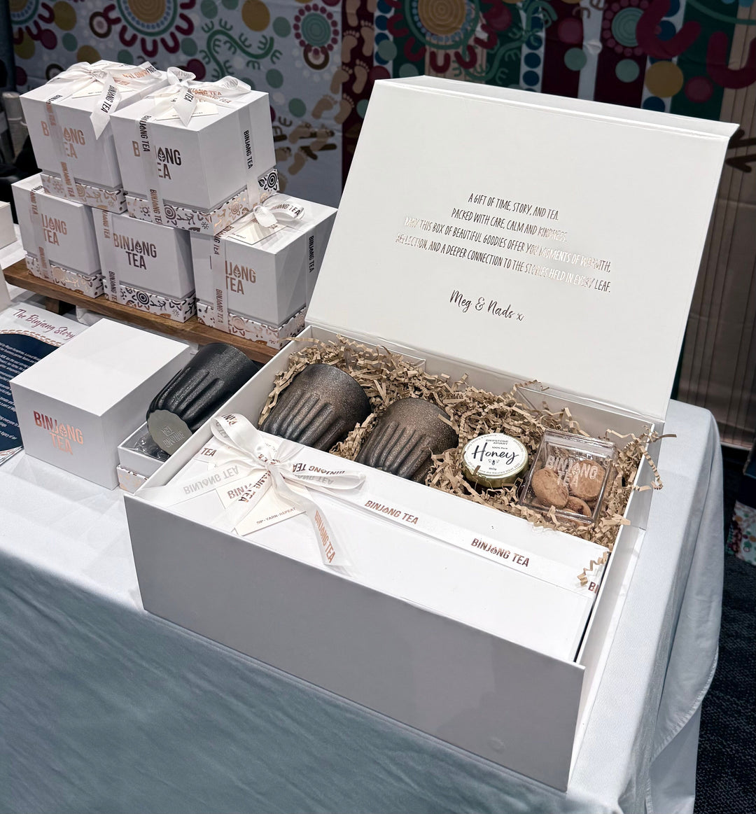 Megan and Nadine believe gifting should feel as special as the moment it’s given. Our Premium, Elegant Binjang Hampers are thoughtfully curated to reflect care, connection, and quality. Each hamper is filled with our signature Binjang Tea blends and hand-selected accompaniments that celebrate the beauty of Australia.
